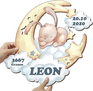Elbeffekt Baby Namensgeschenke aus Holz - personalisierbares Geschenk - Geburtsgeschenk Mädchen personalisierte Geschenke Baby Taufgeschenk - schenke Dein liebevolles Häschen aus Echtholz