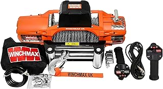 Winchmax 13500lb / 6123kg 'SL-Serie' Original orange 12v elektrische Winde. 24 m x 9,5 mm verzinktes Stahldrahtseil. 3/8 Zoll Gabelkopfhaken, Rollenführung. Drahtlose Doppelfernbedienung