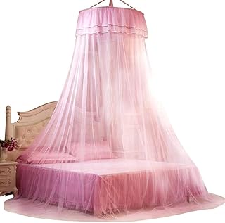 fasient Moskitonetz Bett Baldachin Faltbare 360 Grad Runde Baldachin Atmungsaktive Mesh Princess Lace Style Bett Moskitonetz für Damen Schlafzimmer Dekoration(Pink)