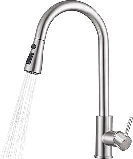 TNOMS Ausziehbare Küchenarmaturen aus gebürstetem Nickel, Einhebel-3 Funktionen, Sprüher, Edelstahl, Küchenspüle, Wasserhahn ohne Deckplatte
